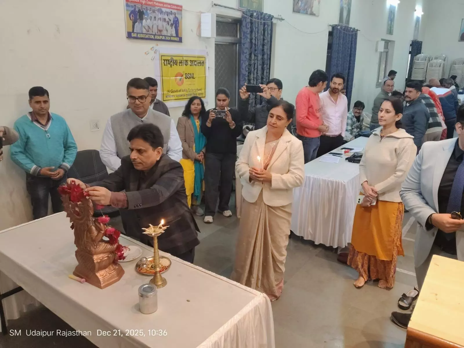 उदयपुर, राष्ट्रीय विधिक सेवा प्राधिकरण नई दिल्ली एवं माननीय सदस्य सचिव राजस्थान राज्य विधिक सेवा प्राधिकरण जयपुर के तत्वावधान में श्रीमान ज्ञान प्रकाश गुप्ता जिला एवं सैशन न्यायाधीश (अध्यक्ष जिला विधिक सेवा प्राधिकरण) उदयपुर के निर्देशो के क्रम मेंं रविवार को राष्ट्रीय लोक अदालत का आयोजन किया गया। उदयपुर मुख्यालय के न्यायाधीशगण के करकमलों द्वारा दीप प्रज्ज्वलन के साथ राष्ट्रीय लोक अदालत का विधिवत शुभारंभ किया किया गया। दीप प्रज्ज्वलन के समय उदयपुर मुख्यालय के न्यायाधीशगण, अधिवक्तागण, बैक बीमा के अधिकारीगण एवं पक्षकारगण उपस्थित रहे।