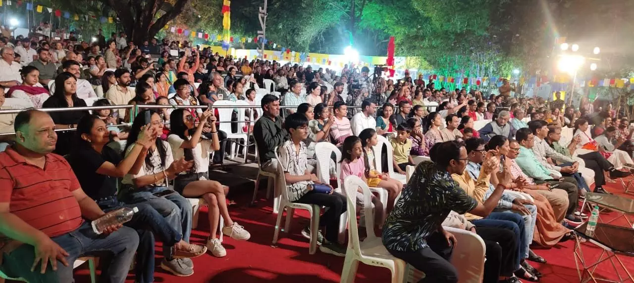 समारोही कार्यक्रम में मंच पर केंद्रीय मंत्री नितिन गडकरी, पश्चिम क्षेत्र सांस्कृतिक केंद्र के सहायक निदेशक दुर्गेश चांदवानी, दक्षिण मध्य क्षेत्र सांस्कृतिक केंद्र की निदेशक डॉ. आस्था कार्लेकर तथा सहायक निदेशक दीपक कुलकर्णी उपस्थित थे।