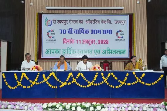 उदयपुर । दी उदयपुर सेन्ट्रल को-ऑपरेटिव बैक लि. के प्रशासक एवं जिला कलक्टर नमित मेहता की अध्यक्षता में शनिवार को राजस्थान कृषि महाविद्यालय सभागार, उदयपुर में बैंक की वार्षिक साधारण सभा की बैठक आयोजित की गई। बैठक को संबोधित करते हुए प्रशासक एवं जिला कलक्टर नमित मेहता ने कहा कि वर्ष 2025 में अन्तर्राष्ट्रीय सहकारिता वर्ष मना रहे हैं जिसकी थीम ‘सहकारिता एक बेहतर दुनिया का निर्माण करती है‘ रखी गयी है। अतः हम सब मिलकर सहकारिता के इस उद्देश्य को साकार करें एवं सहकार से समृद्धि की भावना से अंत्योदय का विकास करें।