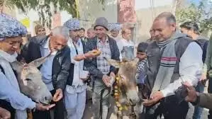 खाद संकट पर किसानों का अनोखा विरोध, गधों को माला पहनाकर जताया आक्रोश