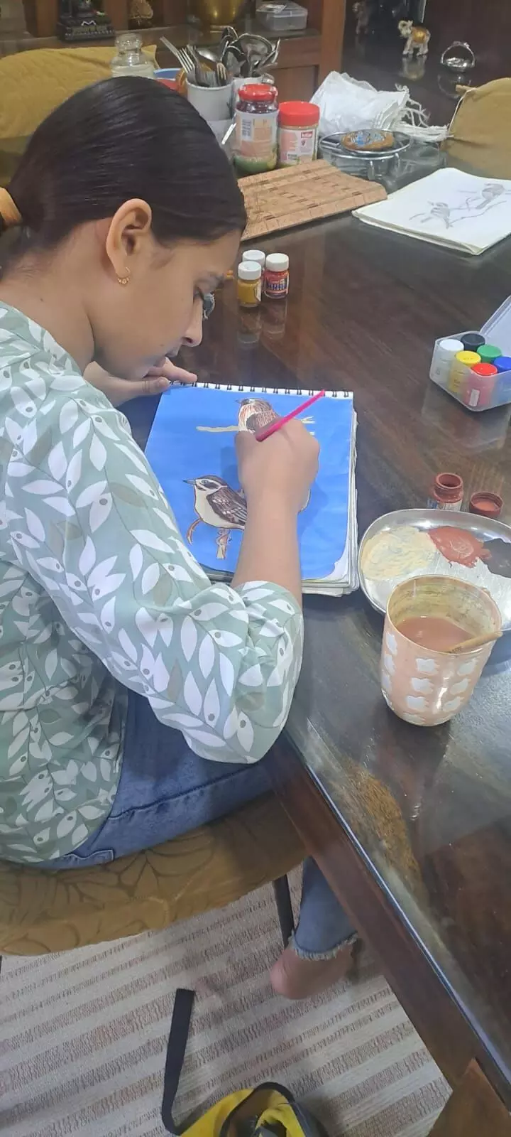 इसी क्रम में विश्व गौरैया दिवस के अवसर पर 12 वर्षीय छात्रा कुनिषा कुमावत ने वाटर कलर के माध्यम से गौरैया के जोड़े का सुंदर चित्र बनाया। यह चित्र उन्होंने ममता जोशी के निर्देशन में तैयार किया।