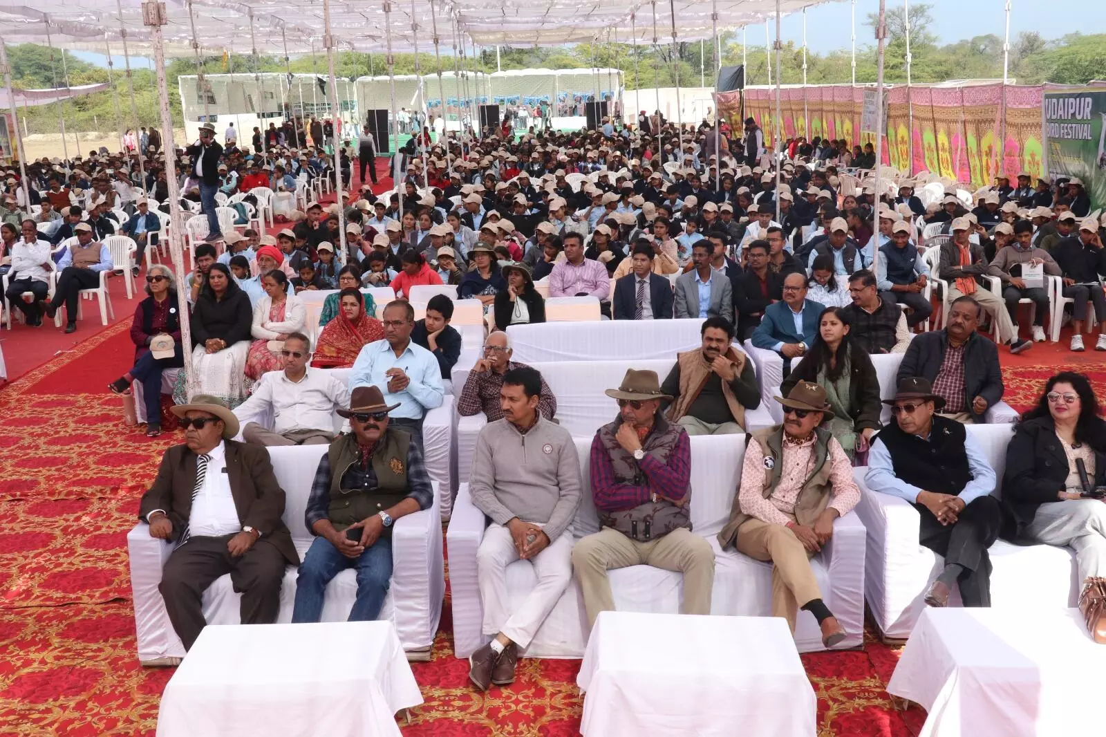 उदयपुर, । उदयपुर बर्ड फेस्टिवल के 12 वें संस्करण का शुभारंभ मेनार गांव की रामसर साइट पर शुक्रवार को समारोहपूर्वक हुआ। तीन दिवसीय फेस्टिवल के उद्घाटन समारोह के मुख्य अतिथि के रुप में चित्तौडगढ संसदीय क्षेत्र से सांसद सीपी जोशी और विशिष्ट अतिथि के रूप में सांवलिया जी मंदिर मंडल अध्यक्ष जानकी दास उपस्थित रहे। इस अवसर पर बड़ी संख्या में पक्षी प्रेमी, स्कूली बच्चे, स्थानीय ग्रामीण, वन विभाग के अधिकारीगण भी मौजूद थे। उदयपुर बर्ड फेस्टिवल का शुभारंभ पहली बार उदयपुर से बाहर किया गया। मेनार को हाल ही में रामसर साइट घोषित करने से फेस्टिवल के लिए इस स्थान का चयन किया गया।
