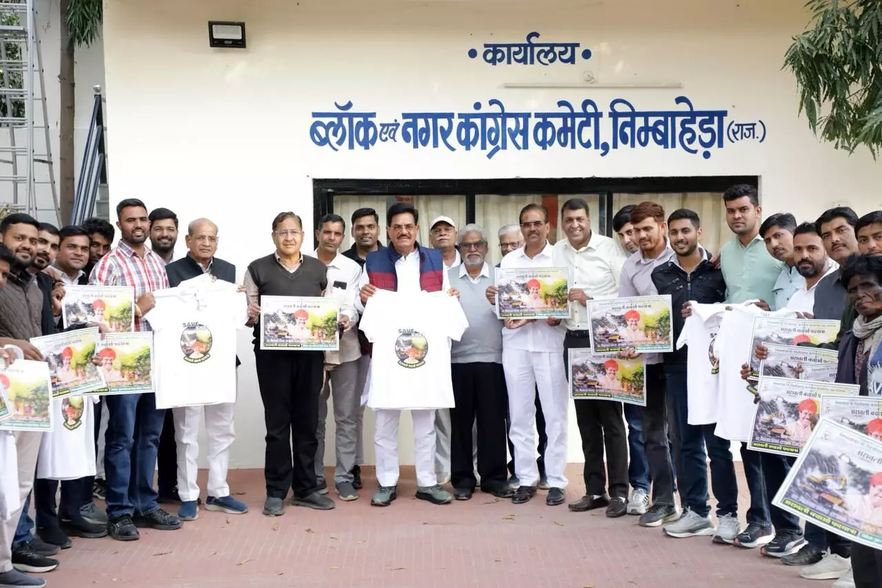 निंबाहेड़ा |राजस्थान सरकार के पूर्व सहकारिता मंत्री उदयलाल आंजना की प्रेरणा एवं मार्गदर्शन से निंबाहेड़ा युवा कांग्रेस–NSUI परिवार, द्वारा आगामी 30 दिसंबर को आयोजित होने वाली “अरावली बचाओ पदयात्रा” के लिए गुरुवार को सायं 4 बजे पेच एरिया परिसर स्थित कांग्रेस कार्यालय पर पूर्व सहकारिता मंत्री उदयलाल आंजना द्वारा पोस्टर एवं टीशर्ट का विमोचन किया गया।