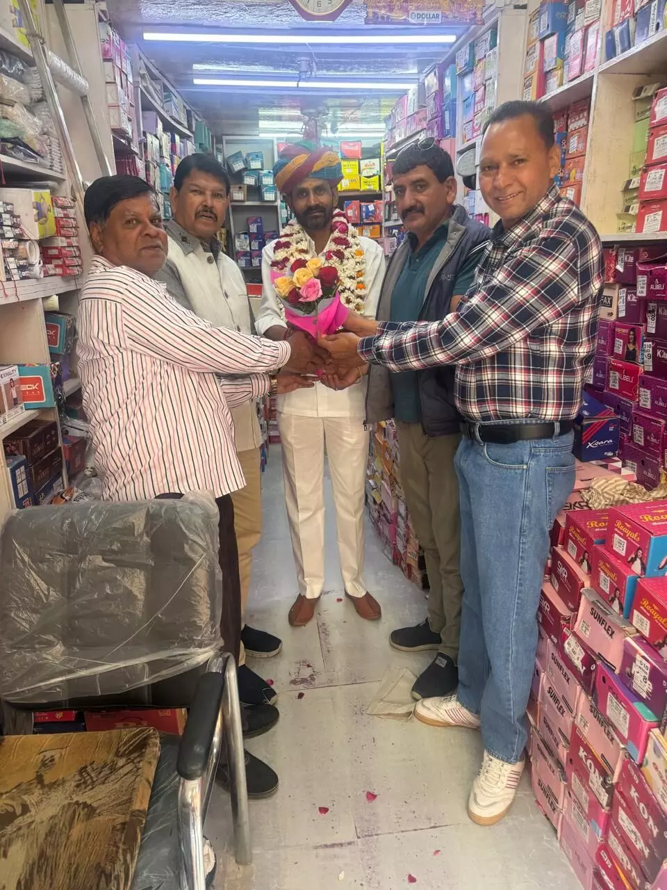 -शाहपुरा,भारतीय जनता पार्टी राजस्थान संगठन पर्व 2024 के तहत शाहपुरा नगर मंडल अध्यक्ष नियुक्त होने पर पंकज सुगन्धी का पूर्व मंडल अध्यक्ष एवं पूर्व पार्षद रमेश मारू के नेतृत्व मे उनके प्रतिष्ठान पर साफ़ा और माला पहनाकर तथा बुके भेंट कर मिठाई वितरित की गई । नगर पालिका के पूर्व प्रतिपक्ष नेता एवं वर्तमान पार्षद माोहन लाल गुर्जर ने बताया कि भाजपा जिला निर्वाचन प्रक्रिया के दौरान पंकज सुगन्धी को निर्वाचित किया गया है,इस अवसर आयुष विभाग के पूर्व उप निदेशक एवं भाजपा सक्रिय सदस्य डॉ. जलदीप पथिक ,रमेशच मारू ,राजाराम पाोरवाल ,राम प्रकाश काबरा सहित कई नगर वासी मौजूद थे ।
