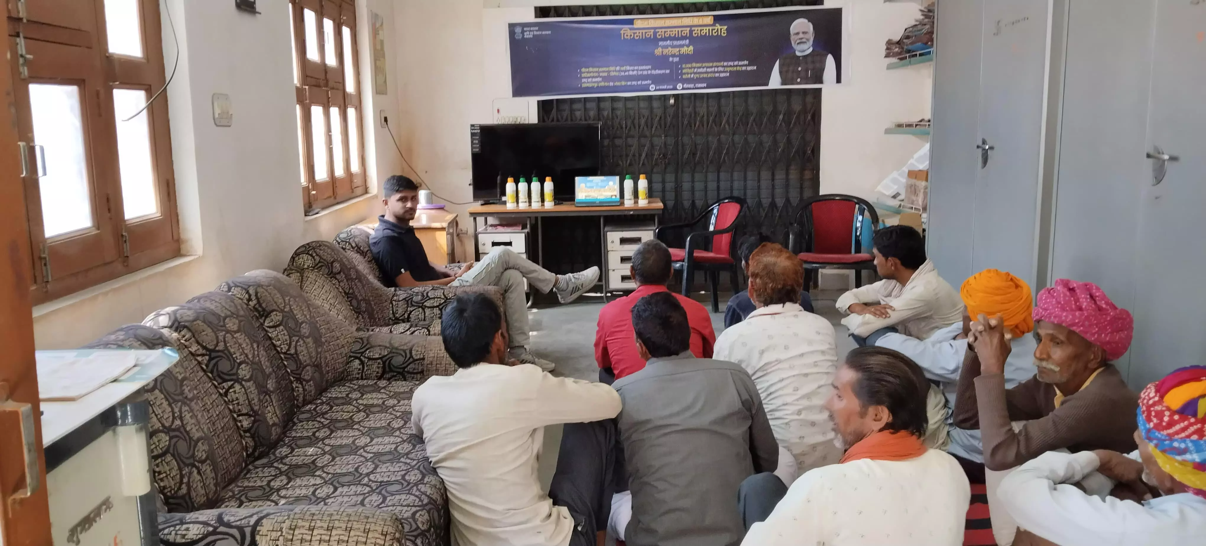 लाडपुरा @ ( शिव लाल जांगिड़ ) लाडपुरा कस्बे में पीएम किसान सम्म्मान अंतर्गत एक दिवसीय लाइव प्रोग्राम का ग्राम सेवा सहकारी समिति में आयोजन किया। इफको द्वारा भीलवाड़ा में पीएम किसान सम्म्मान निधि के 6 वर्ष के उपलक्ष में माननीय प्रधानमंत्री श्री नरेन्द्र मोदी के द्वारा पीएम किसान सम्म्मान निधि की 19 वी किस्त का हस्तान्तरण के मौके पर किसानों को लाइव प्रोग्राम दिखाया गया जिसमें 40 किसानो ने भाग लिया। जिसमें एस एफ ए कमलेश भूखर ने किसानों को नैनो यूरिया एवं नैनो डीएपी के बारे में भी जानकारी दी