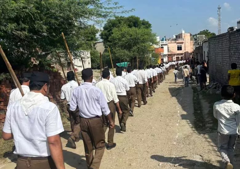 शाहपुरा (किशन वैष्णव)। राष्ट्रीय स्वयंसेवक संघ के शताब्दी वर्ष के उपलक्ष्य में खामोर मण्डल द्वारा भव्य पथ संचलन का आयोजन किया गया। दो दशकों बाद हुए इस आयोजन ने क्षेत्र में उत्साह का वातावरण बना दिया। सैकड़ों स्वयंसेवकों ने इसमें भाग लिया, जिनमें बच्चे, युवा और बुजुर्ग शामिल थे। खास बात यह रही कि दो परिवारों की तीन पीढ़ियों ने एक साथ पथ संचलन में भाग लेकर अनुशासन और राष्ट्रप्रेम का प्रतीक प्रस्तुत किया। संचलन पंचायत भवन से शुरू होकर मुख्य चौराहा, तेजाजी चौक, चारभुजा मंदिर सहित विभिन्न मार्गों से होते हुए वापस पंचायत भवन पर समाप्त हुआ। रास्ते भर ग्रामीणों ने स्वागत किया, महिलाओं ने थाल से आरती उतारी और बच्चों ने तिरंगे झंडे लहराकर उत्साह बढ़ाया। जगह-जगह पुष्पवर्षा भी की गई। विभाग कार्यवाह रामधन गुर्जर और जिला प्रचारक केशव नारायण इस अवसर पर उपस्थित रहे।