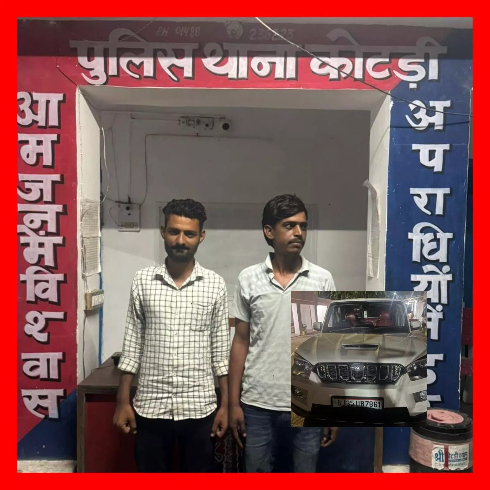कोटड़ी पुलिस का बड़ा एक्शन: गियर बॉक्स के पास छिपाकर ले जा रहे थे अफीम, स्कार्पियो सहित 2 तस्कर दबोचे