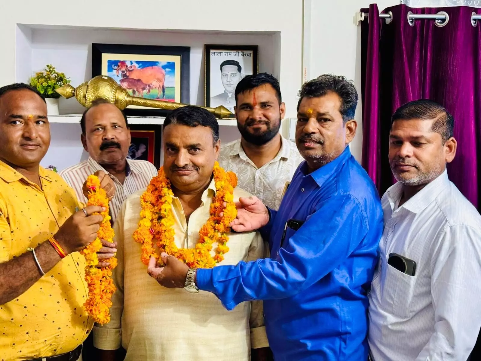 राजेन्द्र खटीक शाहपुरा! शाहपुरा/भाजपा के पुर्व नगर अध्यक्ष राजेन्द्र बोहरा को जुडो एसोसियशन भीलवाड़ा जिलाध्यक्ष बनने पर विधायक कार्यालय पर विधायक लालाराम बैरवा द्वारा माला पहनाकर स्वागत किया गया व मिठाई खिलाकर मुह मीठा किया गया एवं बधाई और शुभकामनाये दी गई।इस कार्यक्रम में नगर अध्यक्ष पंकज सुगन्धी,महावीर सैनी, नटवर खटीक,चन्द्र प्रकाश चौधरी आदि सदस्य मौजूद रहे।