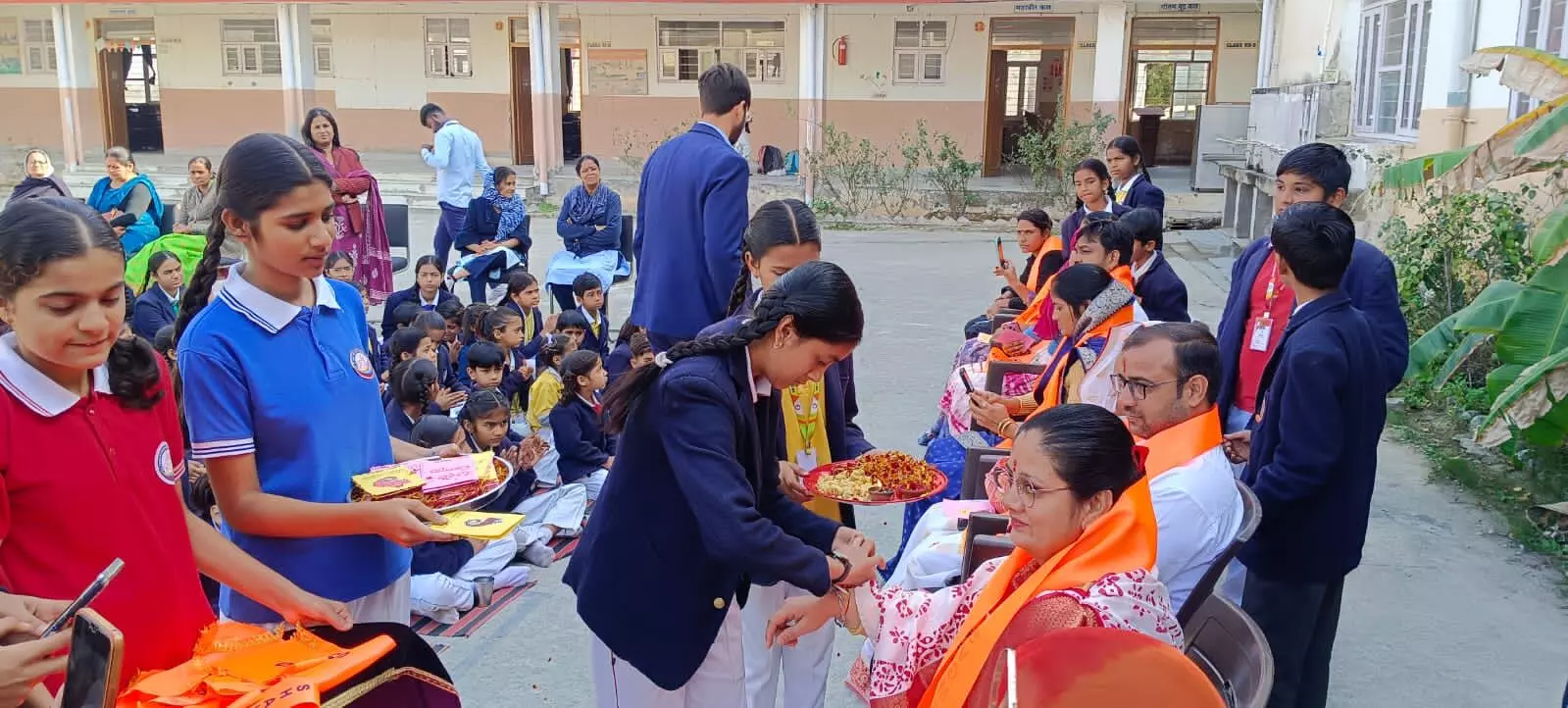 मातृ पितृ दिवस पर पूजन कर बच्चों ने लिया आशीर्वाद
