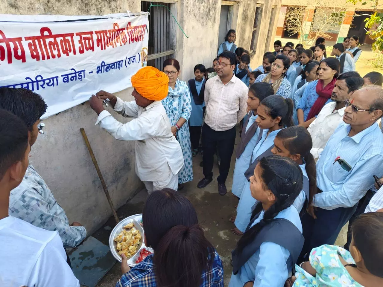 शाहपुरा@(किशन वैष्णव ) राजकीय बालिका उच्च माध्यमिक विद्यालय कासोरिया में प्रवेशोत्सव के अवसर पर स्वर्गीय तेजमल व्यास की पुण्य स्मृति में वाटर कूलर भेंट किया गया भीषण गर्मी में बालिकाओं के लिए शीतल पेयजल के वाटर कूलर की व्यवस्था की गई तथा स्वास्तिक, मोली, तिलक लगाकर एवं पांच बालिकाओं को तिलक व शीतल जल पिलाकर स्वर्गीय तेजमल व्यास के पिता,देवीलाल व्यास ने उद्घाटन किया ।कार्यक्रम में भेंट कर्ता देवीलाल व्यास, रामेश्वर व्यास,कैलाश व्यास, रामस्वरूप व्यास, गोपाल लाल व्यास, किशन व्यास, ग्राम पंचायत प्रशासक रामदयाल ओझा,एसएमसी अध्यक्ष रामलाल प्रजापत,रामचंद्र व्यास, विष्णु वैष्णव पवन कुमार एवं ग्रामीण, व्यास परिवार ,प्रधानाचार्य अंजु सिंगाड़िया, वरिष्ठ अध्यापक अशोक कुमार वर्मा,शारीरिक शिक्षक जय किशन घूसर, निकिता कुमारी, आशा जांगिड़, निर्मला मेघवंशी, इंदिरा बलाई,नोरत नायक,रविंद्र गुर्जर आदि स्टाफ साथी एवं विद्यालय परिवार उपस्थित रहा।