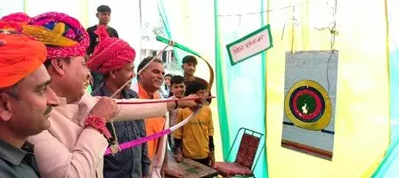 वहीं निशाना साधो स्टॉल पर विधायक मीणा ने तीर कमान से निशाना साधा जो स्टीक लगा।