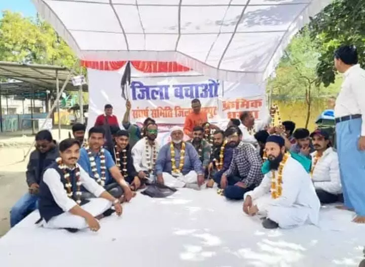 शाहपुरा@(किशन वैष्णव) शाहपुरा जिला बचाओ संघर्ष समिति के द्वारा उपखंड कार्यालय शाहपुरा के बाहर क्रमिक अनशन धरने पर धरना स्थल पर से.वा. ट्रस्ट के अध्यक्ष इमरान मोहम्मद, सचिव मोहम्मद मतीन रंगरेज, सहसचिव नाजिम रंगरेज, संरक्षक मोहम्मद मोईन मंसूरी, हाफिज ऊमर फारूक, ताजुद्दीन उस्ता, मुबारिक पार्षद, सौरभ सर्वा(पार्षद पुत्र), आरिफ मंसूरी, असलम खान, आसिफ खान, अहमद रजा, साहिल मंसूरी, अकरम खान, बबलू खान, समीर, शोयब, दाऊद खान, कादिर छिपा, फारुक डायर, अहसान खान, सहित सैकडो कार्यकर्ता कर्मिक अनशन धरने पर बैठे।जिला बचाओ संघर्ष समिति के ,सदस्य अधिवक्ता शरीफ मोहम्मद रंगरेज, ताज मोहम्मद पठान, नमन ओझा, अंकित शर्मा, आशीष भारद्वाज, अंकित मालू ,अमन ओझा, आदि ने माला पहना कर ट्रस्ट के सदस्य का स्वागत किया।ट्रस्ट के सदस्य अध्यक्ष इमरान मोहम्मद के नेतृत्व में तबोर्डिंग हाउस से शांतिपूर्ण रैली निकालकर काले झंडे तख्तियां हाथों में लेकर नारेबाजी करते हुए शाहपुरा को यथावत जिला बनाये रखने की मांग करते हुए जिला बचाओ संघर्ष समिति के समर्थन में उपखण्ड अधिकारी को राज्यपाल के नाम ज्ञापन दिया । संघर्ष समिति के महासचिव एवं अभिभाषक संस्था के सह सचिव कमलेश मुंडेतिया ने बताया कि सामाजिक संगठनों का लगातार समर्थन मिल रहा है कल 10 फरवरी को जांगिड़ समाज शाहपुरा के सदस्य क्रमिक अनशन धरने पर बैठेंगे।