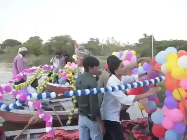 लाखोला गांव में मांगीलाल जाट के पुत्र की शादी में परिवार ने पारंपरिक बारात से हटकर कुछ अलग करने का फैसला किया। इसके तहत सड़क मार्ग की जगह तालाब के रास्ते बारात ले जाई गई। इसके लिए सात नावों को फूल मालाओं, रंगीन लाइटों, गुब्बारों और पारंपरिक सजावट से आकर्षक रूप दिया गया। नावों के पानी में उतरते ही पूरा माहौल उत्सव में बदल गया।