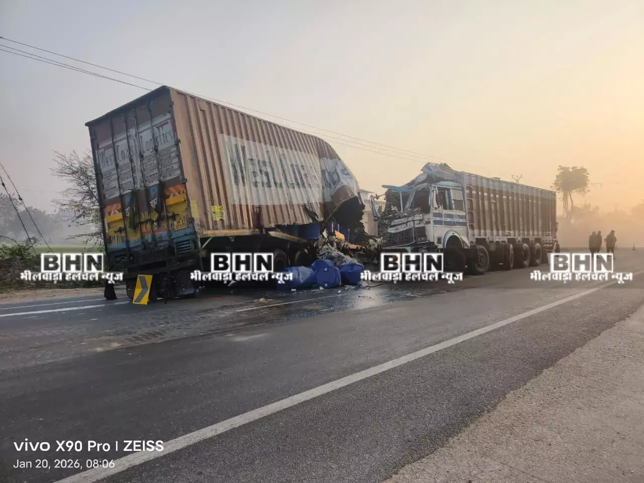 जहाजपुर । शाहपुरा-जहाजपुर रोड पर स्वस्ति धाम के पास सोमवार सुबह घने कोहरे के कारण बड़ा सडक़ हादसा हो गया। दृश्यता कम होने की वजह से दो ट्रक आमने सामने टकरा गए। हादसे में दोनों ट्रकों के चालक गंभीर रूप से घायल हो गए। वहीं मार्ग पर कुछ देर के लिए जाम भी लगा, जिससे वाहनों के पहिये थम गये।