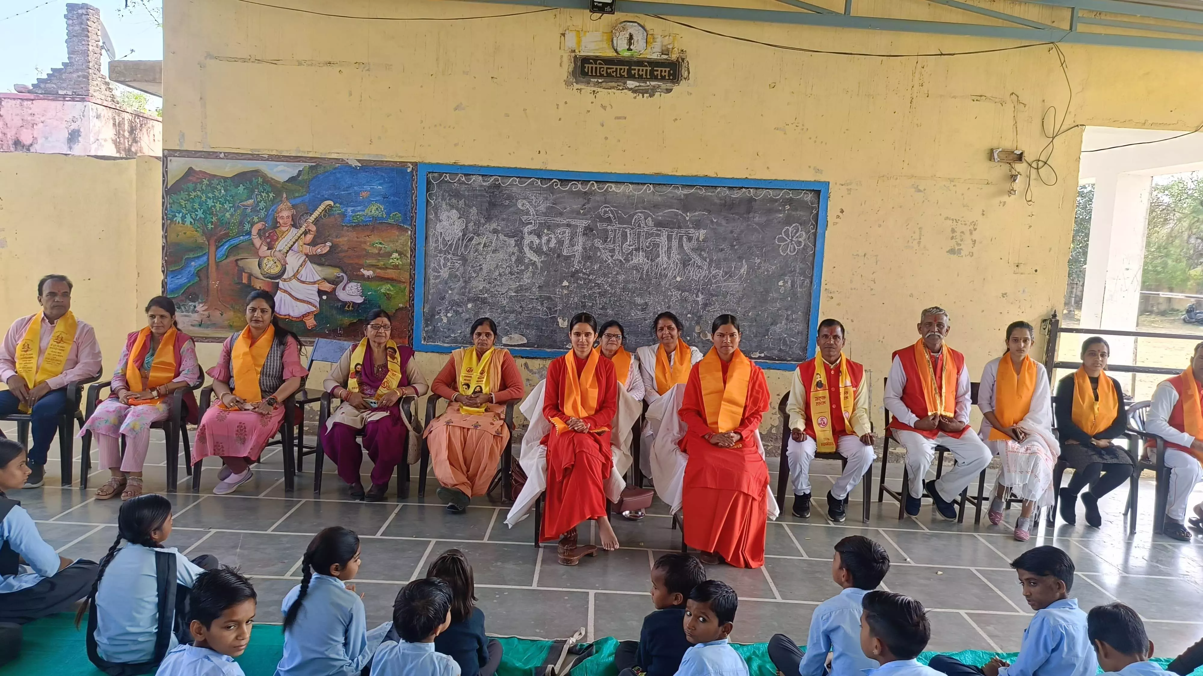 रायला(लकी शर्मा) रायला की राजकीय उच्च माध्यमिक विद्यालय मैं आज पतंजलि योगपीठ हरिद्वार की पूज्य साध्वी देव वाणी एवं देव गरिमा ने प्रार्थना सभा में छात्र-छात्राओं को संबोधित करते हुए कहा कि सुबह जल्दी ब्रह्म मुहूर्त में सभी बालकों को उठ जाने की आदत डालनी चाहिए, साध्वी देववाणी ने बहुत ही मधुर एवं प्रभावी वाणी से बालकों को प्रभावित करते हुए बताया कि सभी को सुबह जल्दी उठने से बालकों का शारीरिक, मानसिक, बौद्धिक विकास तीव्र गति से होता है। महिला पतंजलि योग समिति कि राज्य प्रभारी विजय लक्ष्मी एवं जिला प्रभारी नीरा मेहता ने कहा कि इन तपस्वी बहनों के सत्संग एवं प्रवचन सुनने से बालकों का आध्यात्मिक, आत्मिक ,चारित्रिक बुध्दिबल बढ़ने के साथ सर्वांगीण विकास होता है।