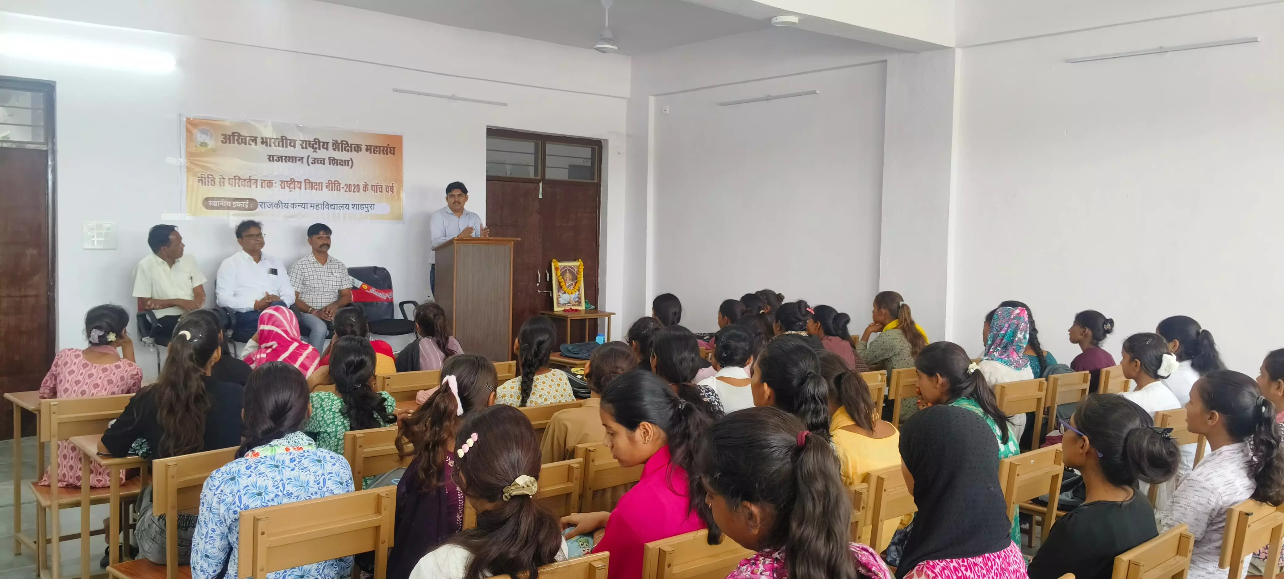 शाहपुरा (किशन वैष्णव ) राजकीय कन्या महाविद्यालय, शाहपुुरा में अखिल भारतीय राष्ट्रीय शैक्षिक महासंघ राजस्थान के बैनर तले शिक्षा नीति के पांच वर्ष पूर्ण होने पर राष्ट्रीय शिक्षा नीति पर व्याख्यान माला का आयोजन किया गया। इस कार्यक्रम की अध्यक्षता डाॅ. पुष्करराज मीणा जिलाध्यक्ष अखिल भारतीय राष्ट्रीय शैक्षिक महासंघ राजस्थान (उच्च शिक्षा) ने की। इस कार्यक्रम के मुख्यातिथि एवं मुख्यवक्ता दिग्विजय सिंह जिला उपाध्यक्ष अखिल भारतीय राष्ट्रीय शैक्षिक महासंघ राजस्थान (उच्च शिक्षा) विशिष्ट अतिथि प्रो. रामावतार मीना रहे। सिंह ने राष्ट्रीय शिक्षा नीति के निर्माण से लेकर क्रियान्वयन तक के सम्पूर्ण प्रारूप को समझाते हुए बताया कि इस नीति के प्रभावी क्रियान्वयन से ही बदलेगा राष्ट्र का भविष्य श्री सिंह द्वारा विद्यालयी शिक्षा, महाविद्यालयी शिक्षा एवं व्यवसायिक शिक्षा के विभिन्न पहलुओं से छात्राओं को अवगत कराया एवं वर्तमान में महाविद्यालय एवं विश्वविद्यालय द्वारा इस नीति का सफल क्रियान्वयन किस प्रकार किया जा रहा है इसकी जानकारी दी। कौशल शिक्षा, व्यावसायिक शिक्षा, साॅफ्ट स्किल आदि के बारे में भी बताया। अध्यक्षीय उद्बोधन में डाॅ. पुष्करराज मीणा ने कहा कि यह नीति ही हमंे गुरूकुल परम्परा की जोडते हुए वैश्विक तकनीकि युग की ऊँचाइयों तक पहुँचाने का मार्ग प्रशस्त करेगी। प्रदेश सह प्रचार प्रमुख धर्मनारायण वैष्णव ने कार्यक्रम की सम्पूर्ण रूपरेखा तैयार की एवं बताया कि यह नीति भारत की नवशैक्षिक दिशा और भविष्य की आधारशिला है क्योंकि समावेशी, समग्र,बहुभाषी और कौशल शिक्षा प्रणाली को बढावा देती है। कन्या महाविद्यालय के प्रभारी डाॅ. हंसराज सोनी ने सभी का आभार व्यक्त किया। प्रभावी मंच संचालन तोरन सिंह चौहान ने किया।