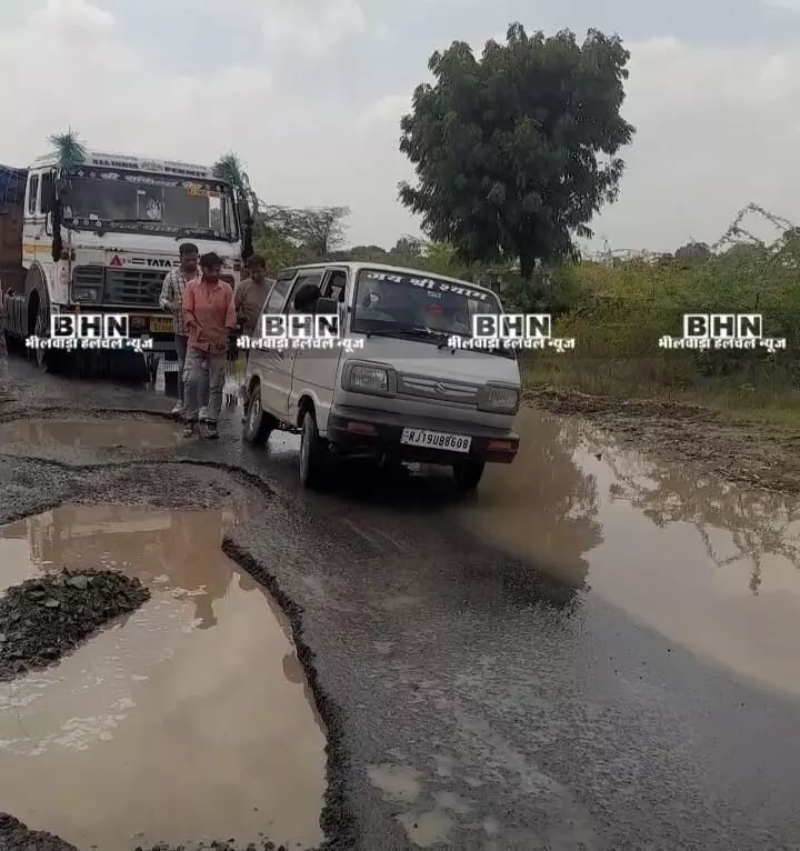 शाहपुरा राजेन्द्र खटीक।शाहपुरा-चौधरी पेट्रोल पंप के आगे शाहपुरा-भीलवाड़ा मार्ग पर पिछले दिनों हुई बारिश से करीब एक फीट गहरे दो बड़े गड्ढे बन गए, जिनमें पानी भरने से राहगीरों के लिए खतरा बन रहा।