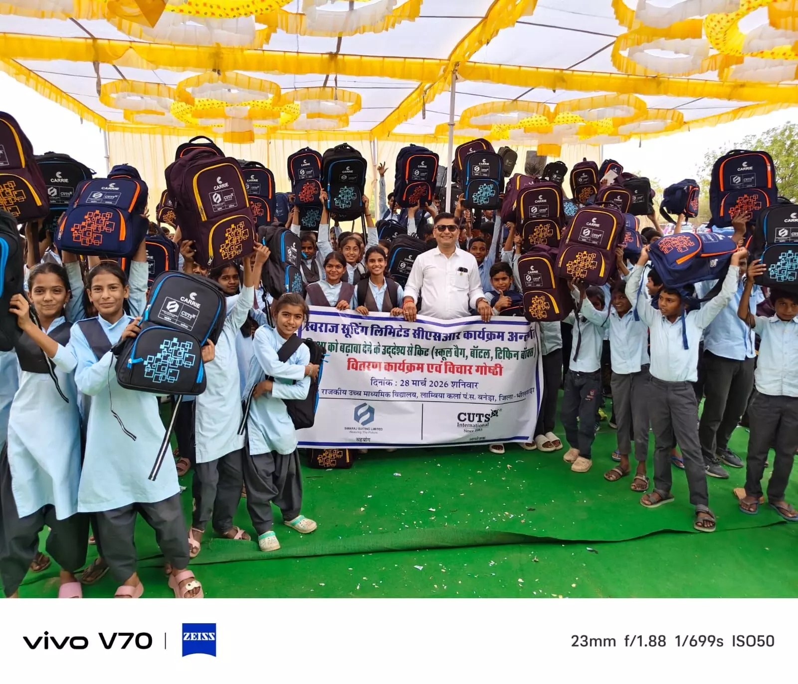 रायला में स्वराज सूटिंग की पहल: 305 बच्चों को बैग-टिफिन वितरण