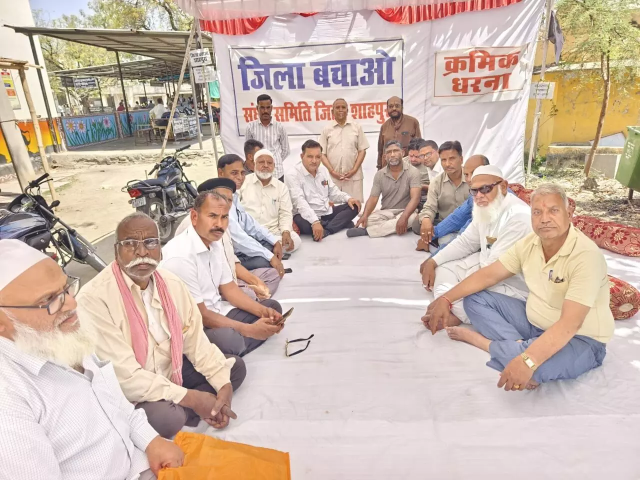 शाहपुरा। जिला बचाओ संघर्ष समिति के तत्वाधान में आंदोलन 83 वें दिन भी लगातार जारी। संघर्ष समिति के संयोजक एडवोकेट रामप्रसाद जाट ने जानकारी देते हुए बताया कि 6 दिवसीय फूलडोल महोत्सव के दौरान संघर्ष समिति के द्वारा आयोजित किए गए विभिन्न कार्यक्रमों की समीक्षा बैठक धरना स्थल पर रखी गई। जिला बचाओ संघर्ष समिति के सदस्यों ने क्रमिक अनशन धरना देकर राज्यपाल के नाम उपखंड अधिकारी को ज्ञापन सौंपा । उन्होंने जानकारी देते हुए बताया कि संघर्ष समिति के द्वारा मेले में अब तक का राजस्थान का सबसे बड़ा ऐतिहासिक हस्ताक्षर अभियान चलाया गया जिसके तहत 34051 लोगों ने अपने हस्ताक्षर कर शाहपुरा जिले को पुनः बहाल करने की राज्य सरकार से मांग की। रामस्नेही संप्रदाय के पीठाधीश श्री रामदयाल जी महाराज ने स्वयं जिला बचाओ संघर्ष समिति के कार्यालय पहुंचकर जिले के समर्थन में हस्ताक्षर कर जिले की बहाली के लिए मंगल कामना की। वही अन्य दूरस्थ जिलों से आए हुए संतों ने कवियों ने व भजन गायको ने भी शाहपुरा जिले की मांग की आवाज उठाकर संघर्ष समिति को मजबूती प्रदान की जिनका सभी का संघर्ष समिति के अध्यक्ष दुर्गा लाल राजोरा द्वारा आभार व्यक्त किया गया था। संघर्ष समिति के सदस्यों ने साथ बैठकर आगामी कार्यक्रमों की रूपरेखा तय की गई। एडवोकेट शरीफ मोहम्मद अंकित शर्मा सोनू शर्मा ताज मोहम्मद सहित इस मौके पर उदय लाल बेरवा, सत्यनारायण पाठक, राजेंद्र बोहरा, धनराज जीनगर, हाजी उस्मान छीपा, अर्पित कसेरा, नूर मोहम्मद रंगरेज आदि उपस्थित रहे।