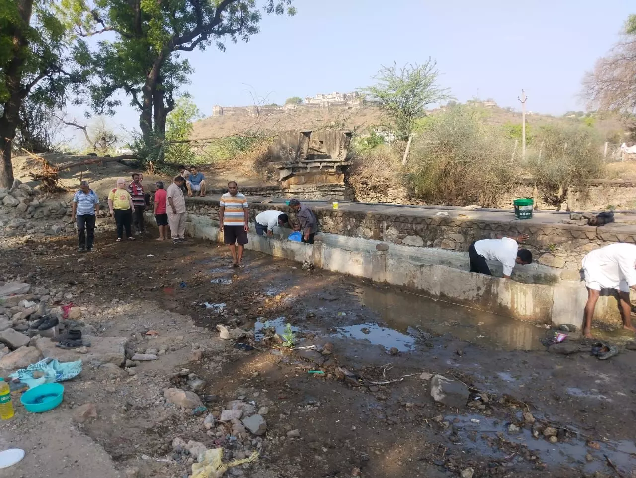 ढोल बजाकर सामाजिक कार्यकर्ताओं ने की प्राचीन पौ की साफ-सफाई