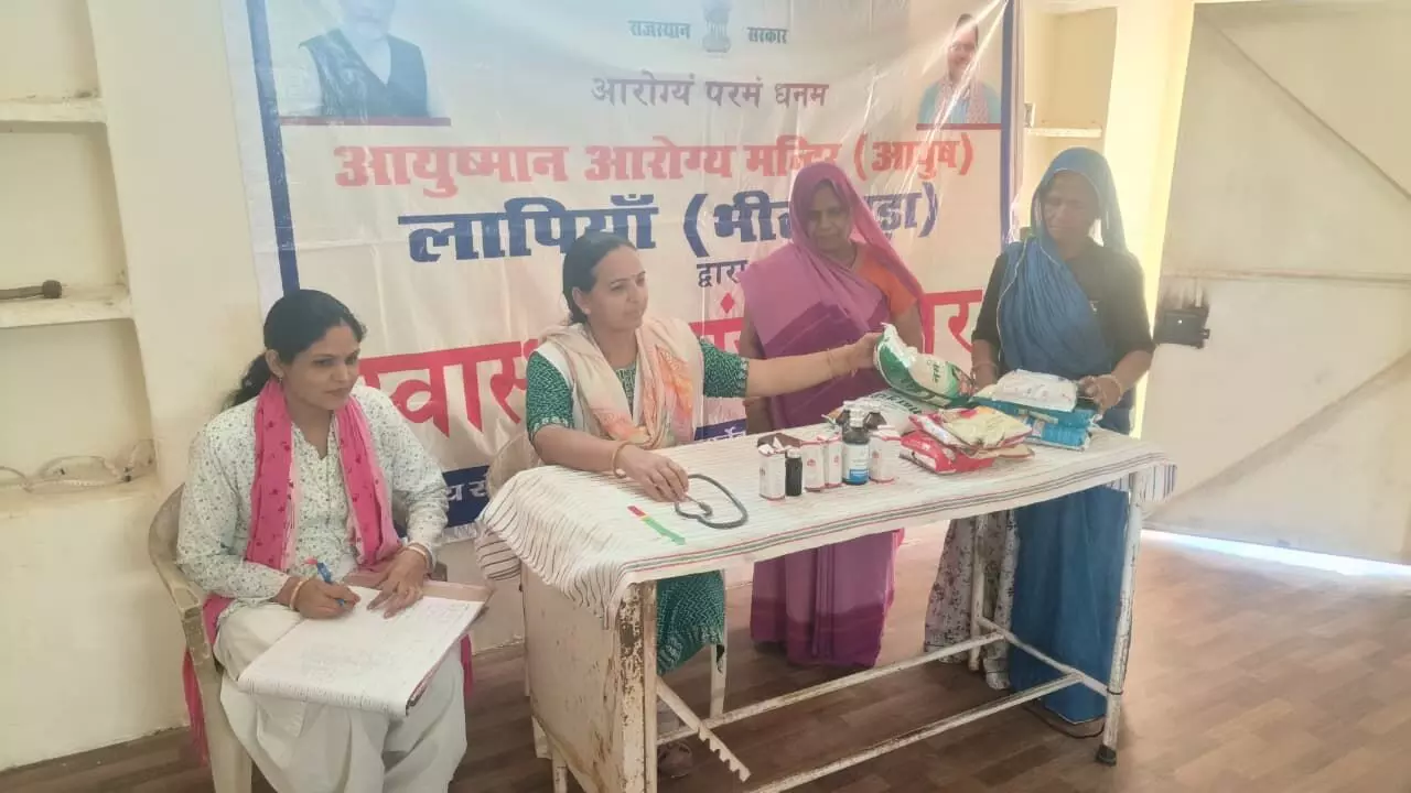 बनेड़ा: लापिया के नंद घर में 8वें पोषण पखवाड़े का आयोजन, बच्चों के स्वास्थ्य की हुई जांच