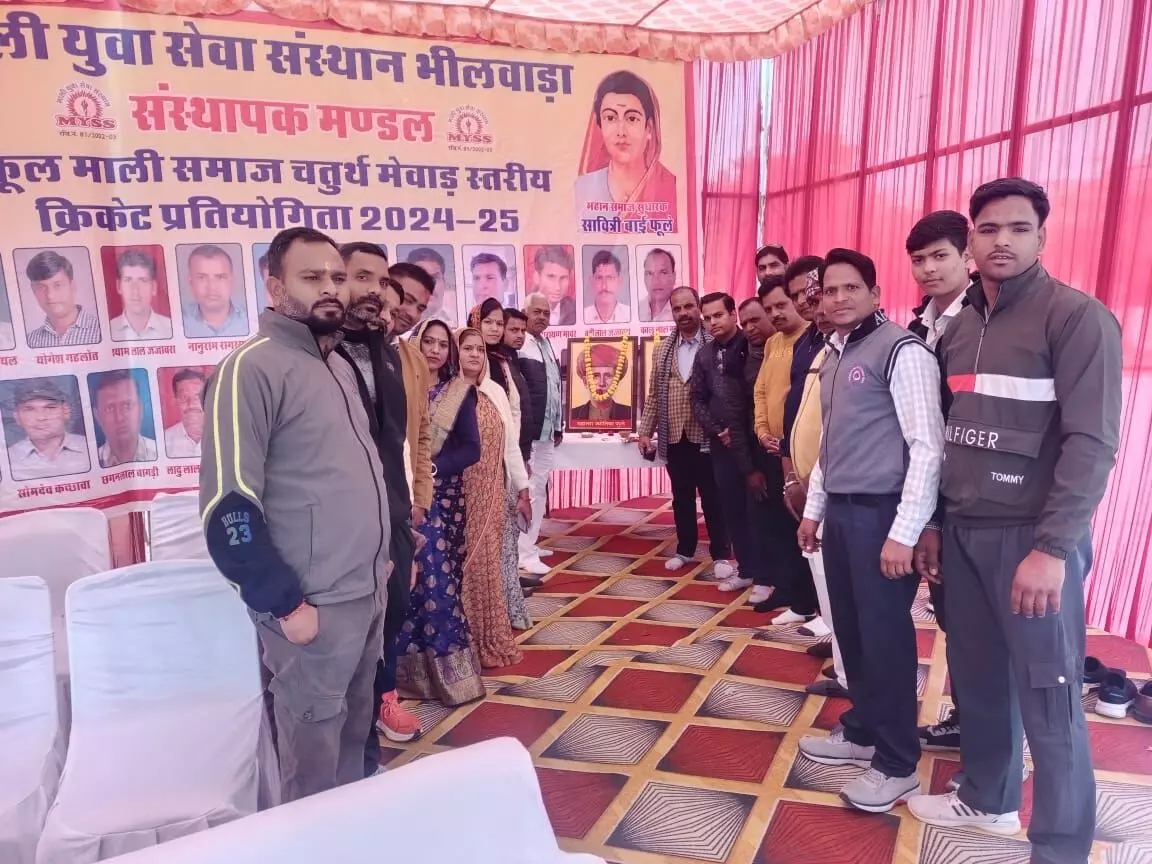 भीलवाड़ा माली समाज की मेवाड़ स्तरीय क्रिकेट प्रतियोगिता का शुभारंभ मोदी ग्राउंड में आज किया गया, माली युवा सेवा संस्थान के युवा संरक्षक हरनारायण माली ने बताया कि हर वर्ष की भांति इस वर्ष भी माली समाज द्वारा क्रिकेट प्रतियोगिता का आयोजन किया जा रहा है, उक्त क्रिकेट प्रतियोगिता का 05 जनवरी तक किया जा रहा है । उक्त प्रतियोगिता में कुल 24 टीमें भाग ले रही है, 5 जनवरी को टूर्नामेंट का फाइनल आयोजित किया जाएगा। कार्यक्रम का उद्घाटन नगर निगम महापौर राकेश पाठक द्वारा किया गया, इस अवसर पर महापौर पाठक ने कहा कि खेलों से हमें जीवन जीने की शैली सीखने को मिलती है हार एवं जीत एक ही सिक्के के दो पहलू हैं लेकिन हमें खेल को खेल की भावना से ही खेलना है , अतिथियों द्वारा महात्मा ज्योतिबा फुले एवं मां सावित्रीबाई फुले के चित्र पर माल्यार्पण एवं दीप प्रज्वलित कर कार्यक्रम का शुभारंभ किया गया। उद्घाटन कार्यक्रम में अतिथि के रूप में पूर्व पार्षद नंदलाल माली, युवा संरक्षक हरनारायण माली, माली युवा संस्थान के अध्यक्ष पूसा लाल माली, समाज संपत्ति ट्रस्ट के अध्यक्ष दिनेश माली, पार्षद प्रतिनिधि बबलू माली, पार्षद प्रतिनिधि दौलत माली, पार्षदा मोहिनी माली, संस्थान के पूर्व अध्यक्ष राजकुमार माली, योगेश गहलोत, युवा संस्थान के सचिव राजेश पारेता, गौरी शंकर डाबी, कालू मोरी, देवकरण माली, लोकेश माली उपस्थित रहे । कार्यक्रम का संचालन अध्यापक रामनारायण माली ने किया। कार्यक्रम के पश्चात संस्थान अध्यक्ष पूसा लाल माली द्वारा पधारे हुए सभी अतिथियों का धन्यवाद ज्ञापित किया गया।