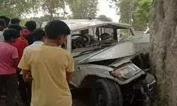 बोलेरो बाइक को टक्कर मारने के बाद पेड़ से टकराई, पांच की मौत