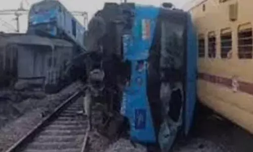 दो मालगाड़िया टकराई, दोनो के चालक घायल