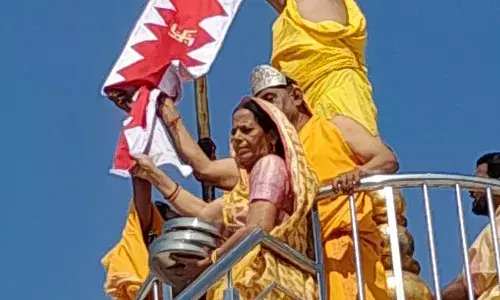 पायड़ा के पद्मप्रभु जैन मंदिर पर ध्वजा परिवर्तन